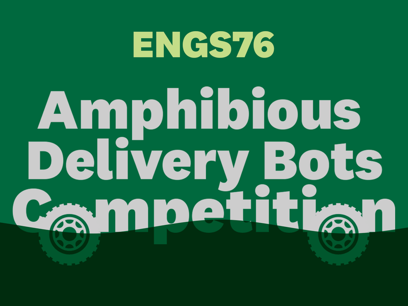 Watch students in ENGS 76: Machine Engineering showcase the RC Amphibious Delivery Bots they designed and manufactured this term. The radio controlled bots will be moving between water and land elements as they use custom motor-controlled mechanisms to pick up and transport objects of different weights between different loading and unloading docks. See the teams compete for the most points!
