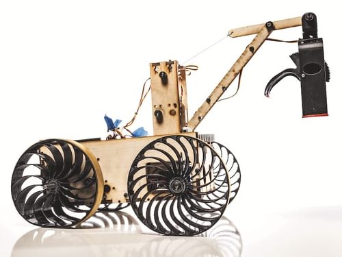 One "Machine Engineering" student team created a winch and fishing rod to help its rover—Chris McGnome—climb the cliff in the obstacle course competition. See more designs in this issue's photo essay. (Photo by Rob Strong '04)