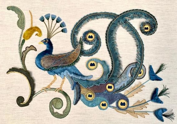 She eventually earned a diploma in technical hand embroidery from the Royal School of Needlework and took courses from the Embroiderers' Guild of America, which recognized her as a master craftsman in crewel embroidery in 2018. Currently, her focus is on Jacobean crewelwork, goldwork and silk stumpwork. She even visited the Victoria and Albert Museum for private viewings of their historic pieces to learn about stitch composition.