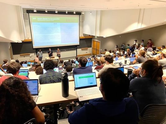 After hearing all the presentations, students ranked their top three project choices and then Professor Diamond entered each student's preferences, experience, and background into a script programmed to optimally match diverse teams of 4–6 students to a project. After running for approximately 60 hours, the script assigned teams to 24 of the 48 submitted projects with 70% of students matched with their first choice.