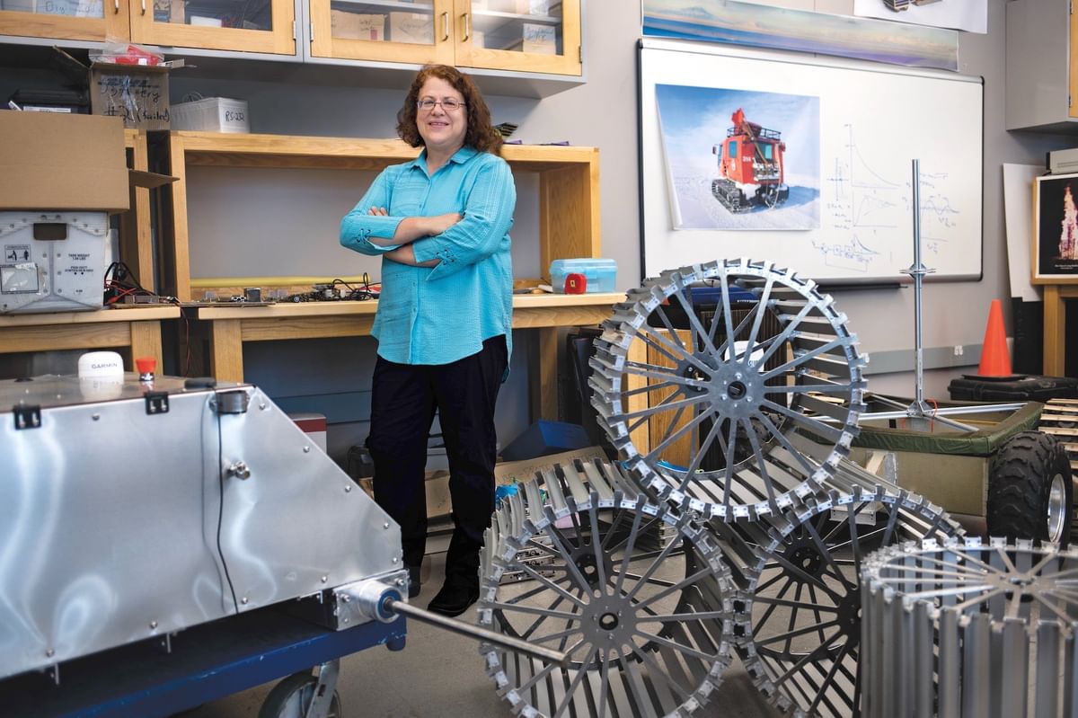 Back on Earth, Professor Ray creates robots that are actively deployed in Greenland and Antarctica, most notably to tow radar systems over the precariously fragile zones of moving ice sheets. Previously, this analysis was done by heavy trucks that could only pass over the area once owing to safety concerns, but an autonomous, solar-powered robot designed by Professor Ray and her students eliminated this risk entirely. Dubbed Yeti, it enabled the first such survey of its kind. "We could see the whole length of crevasses—how far they extended, whether the ones on the top matched the ones on the bottom—through the whole 200-meter thickness of ice." As part of this endeavor, she has dispatched undergraduates to Greenland to monitor the robots' operations. "Altogether, it has this element of the outdoors, the robots are fun to work with, and the science is really interesting," she explains. "This kind of work really gets students excited."