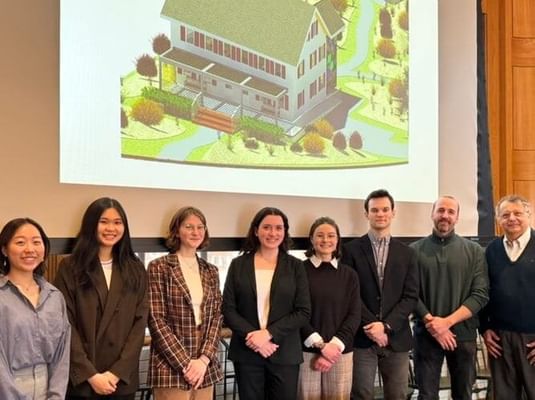 Student projects that helped earn the designation include Dartmouth's submission to DOE's 2024 Solar Decathlon Design Challenge, in which interdisciplinary student teams create high-performance building designs to address a real-world issue related to climate change, affordability, and environmental justice. Dartmouth's team advanced this year as one of 40 finalists with their design of an accessible, net-zero energy retrofit of a three-unit apartment building in Wilder, Vermont.