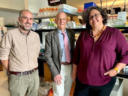 Project team leaders (l to r): Dartmouth Engineering professors Ryan Halter, Keith Paulsen, and Kimberly Samkoe (Scott Davis not pictured). (Photo by Catha Mayor)