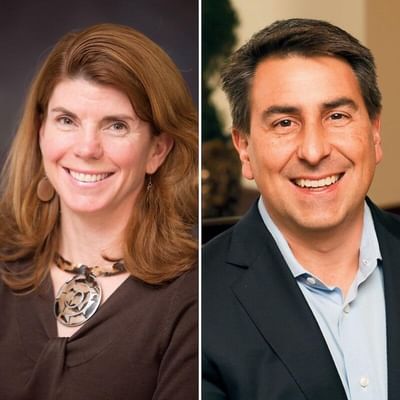 Former Board chair Samantha Scollard Truex '92 Th'93 Tu'95, and new chair Todd Cook '93 Th'94.