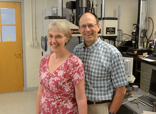 Barbara and John Currier in the Dartmouth Biomedical Engineering Center. (Photo by Kathryn Lapierre)
