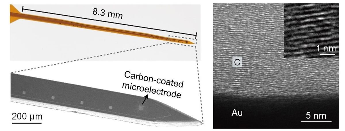 "Our paper addresses these pain points," said Fang. "The ability to scale up this type of sensing to many electrodes in a high-density array that covers a bigger area with higher throughput, and then also to easily integrate them with neural recording—that's a big deal. So we developed a stabilized carbon coating to go on top of the conventional metal electrodes used for electrical signal recording."