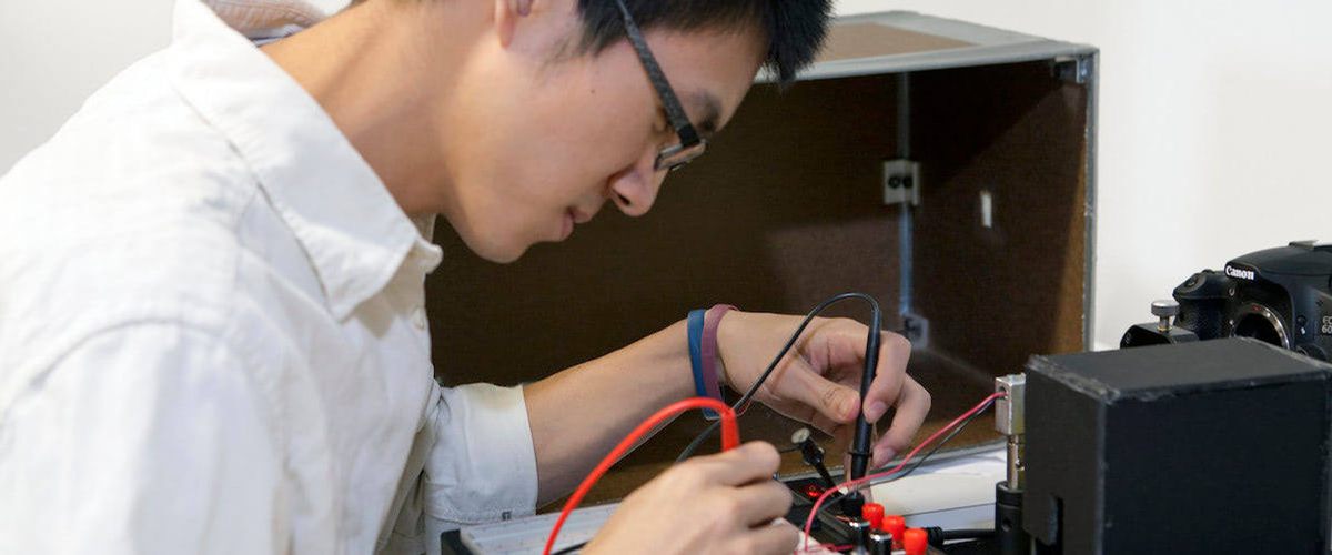 Former PhD Innovation Program candidate Song Chen in Professor Eric Fossum's lab. (Photo by Liza Chrust Friedman)