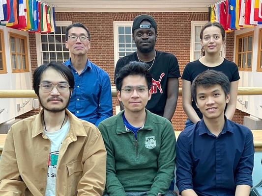 Members of the Learning, Intelligence + Signal Processing (LISP) Lab: (back row, l to r) Professor Peter Chin, Edwin Onyango '25, MS candidate Felicia Schenkelberg; (front row l to r) PhD candidates Junyan Cheng, Quang Truong, and Thang Nguyen. Not pictured: PhD candidate Allison Mann, MS candidate Zachary Gottesman, Zachary Nelson-Marois '24, Chelsea Joe '25, Iroda Abdulazizova '26, Destin Niyomufasha '26. (Photo by Catha Mayor)